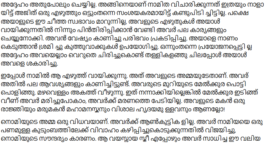 Nomita now reads the letter. It is from her mother. She goes on complaining about things – the ceiling of her room is cracked and the rainwater falls in. If this is not remedied she may die as the roof comes crashing down. She does not mind death. Her daughter is a queen and her son-in-law is high minded and large-hearted, etc. etc.