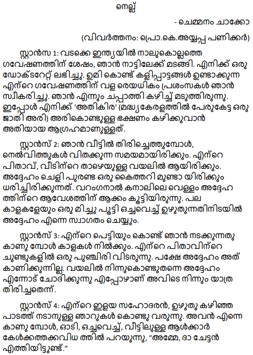 Rice (Poem) Meaning Of The Poem in Malayalam