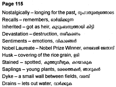 The poem is written in a colloquial style. The poem is a translation from the Malayalam original. A number of Malayalam words are used in the poem. These words will not be understood by foreigners even with some explanations as they would not even know the various varieties of rice that we cultivate here. Such words are ‘athirika’, ‘modan’ and ‘vellaran’.