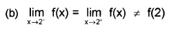 f(2–) = 1, f(2+) = -1 and f(2) = 0