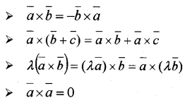 - \(\bar{a} \times \bar{b}\) is a vector perpendicular to \(\bar{a}\) and \(\bar{b}\).