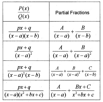 Now if \(\frac{P(x)}{Q(x)}\) is proper function we factorise the denominator Q(x) into simpler polynomials and decompose into simpler rational function. For this we use the following table.