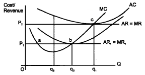 Under perfect competition, market determines the price – price taker and not price maker firms produce the output that maximises its profit – a firm may get abnormal profit or normal profit or loss in the short run – only normal profit will prevail in the long run – due to free entry and exit – Draws separate diagram for short run and long run-explains price and output determination as well as profit in short run and long run.