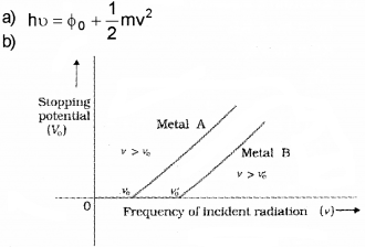 a) According to quantum theory, light contain photons having energy he:, when a photon of energy hvincidents on a metal surface, electrons are liberated. A small portion of the photon energy is used for work function (Φ)and remaining energy is appeared as K.E of the electron.