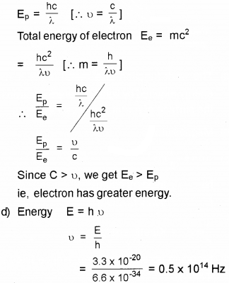 d) Calculate the frequency associated with a pho-ton of energy 3.3 x 10-20 J. [h = 6.6 x 10-34 Js]