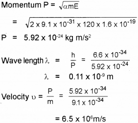 Given mass of the electron = 9.1 x 10-31 kg, h = 6.634 x 10-34 JS, 1 eV = 1.6 x 10-19J