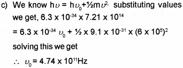 c) When light of frequency 7.21 x 1014 Hz is incident on a metal surface, the maximum speed of the ejected electrons is 6 x 105 m/s. Calculate the threshold frequency forthe metal.