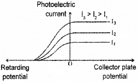 c) Represent graphically the variation of photoelec-tric current with the intensity of incident radiation.