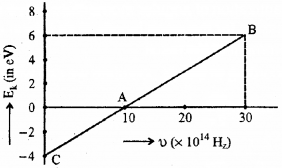 Given below is the graph between frequency (u) of the incident light and maximum kinetic energy (EK) of emitted photoelectrons.