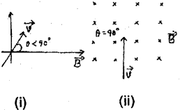 a) An electric charge q is moving with a velocity v in the direction of a magnetic field B. The magnetic force acting on the charge is (March – 2017)