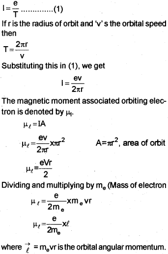 c) According to Bohr atom model electrons are revolving in circular orbits around the nucleus. The movement of electrons can be regarded as a circular current flow. Then derive an expression for the magnetic dipole moment of an orbital electron.