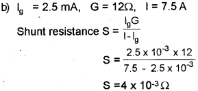 b) A Galvanometer with a coil resistance 12W shows full scale deflection fora current of 2.5mA. How will you convert it into an ammeter of range 0 – 7.5A?