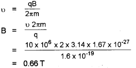 b) A cyclotron oscillator frequency is 10 MHz. What should be the operating magnetic field for accel- erating protons?