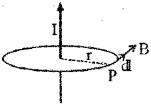 b) Long straight conductor: Consider a long straight conductor carrying T ampere current. To find the magnetic field at ‘P’, we construct a circle of radius r (passing through P).