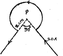 d) The wire shown in figure carries a current of 20A. Find the field at the point P.