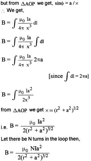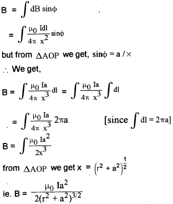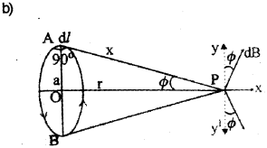 Consider a circular loop of radius ‘a’ and carrying current 9’. Let P be a point on the axis of the coil, at distance x from A and r from ‘Os. Consider a small length dl atA.