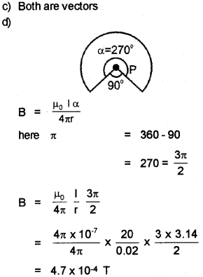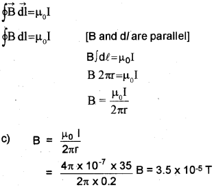 c) A long straight conductor carries 35 ampere. Find the magnetic field produced due to this conductor at a point 20 cm away from the centre of the wire.