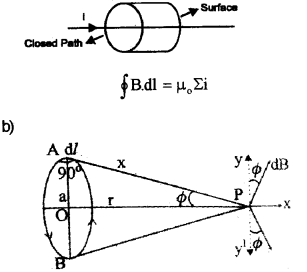 a) According to ampere’s law the line integral of the magnetic field along any closed path is equal to m0 times the current passing through the surface.