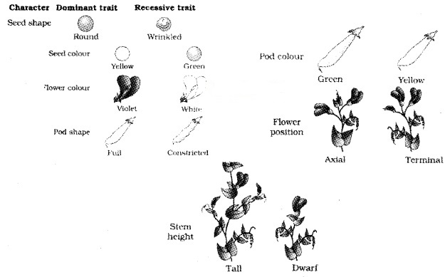 Mendel crossed pea plant seeds with yellow colour and round shape and seeds of green colour and wrinkled shape. Yellow colour was dominant over green and round shape dominant over wrinkled.
