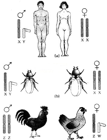 XY type of sex determination is seen where both male (XY- heterogametic) and female (XX- homogametic) have same number of chromosomes. Both males and females bear same number of autosomes. i.e males have autosomes plus XY, while female have autosomes plus XX.