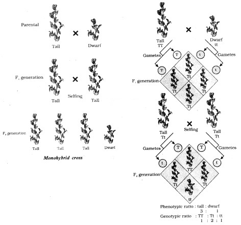 Figure: A Punnett square used to understand a typical monohybrid cross conducted by Mendel between true-breeding tall plants and true-breeding dwarf plants.