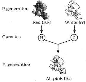 Figure: Results of monohybrid cross in the plant Snapdragon, where one allele is incompletely dominant over the other allele.