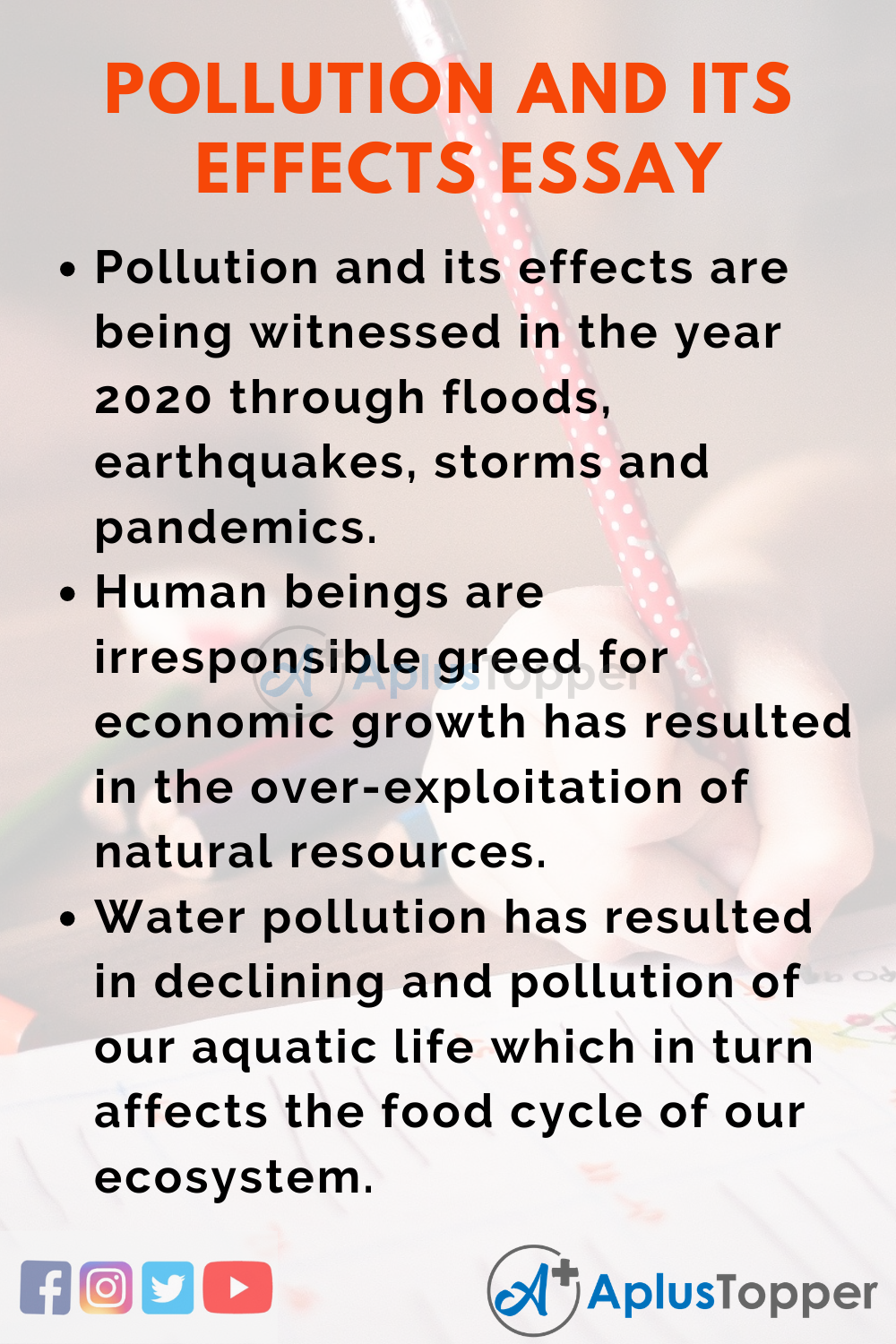 Long Essay about Pollution and its Effects is usually given to classes 7, 8, 9, and 10.
