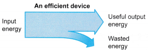 - Figure shows an efficient device. Most of the input energy is converted into useful energy. Very little of the input energy is wasted.