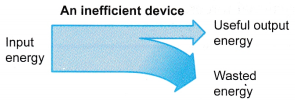 - Figure shows an inefficient device. Most of the input energy is wasted. Only a small portion of the input energy is converted into useful energy.
