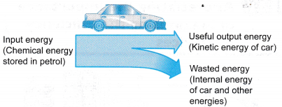 - In the engine of a vehicle as shown in Figure, the energy needed is obtained by burning fuels like petrol and diesel. The energy obtained is converted into kinetic energy of the car. However, a large portion of the energy is wasted.