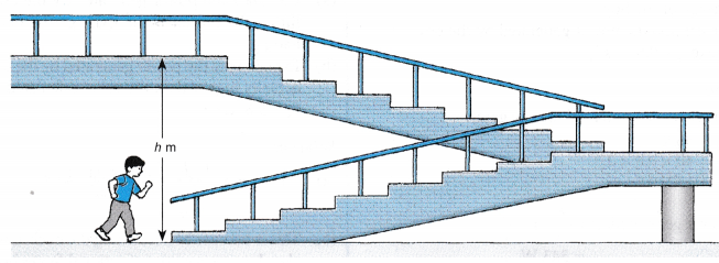 - The vertical height, h gained by the student in running up to the next floor is measured by multiplying the number of steps by the height of each step.