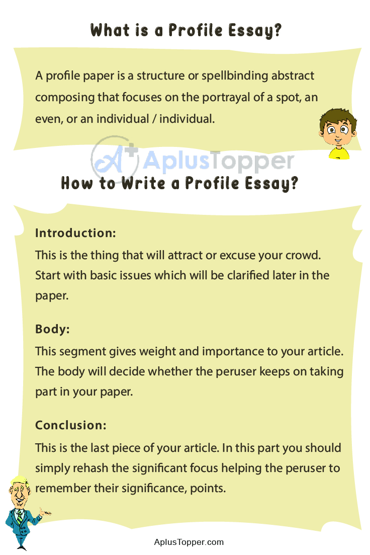 Profile Essay Example: A profile essay is a kind of educational article portraying an individual, spot, or occasion. It ought to be verifiable and engaging yet agreeable to peruse. Get a bit by bit direct for how to compose a profile paper that will be a hit with your users.