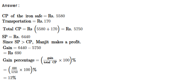 Profit and Loss RS Aggarwal Class 8 Maths Solutions Ex 10A