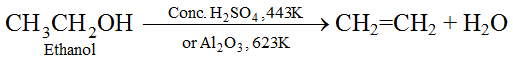 (i) Dehydration : Ethanol. when heated with Conc. H2SO4 at 443 K or Al2O3 at 623 K undergoes dehydration, i.e. loses water molecule to from alkene.