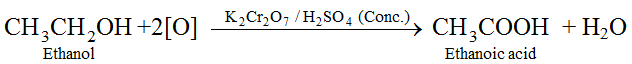 (v) Oxidation with acidified Potassium dichromate : Ethanol is oxidized to ethanoic acid with the help of acidified K2Cr2O7