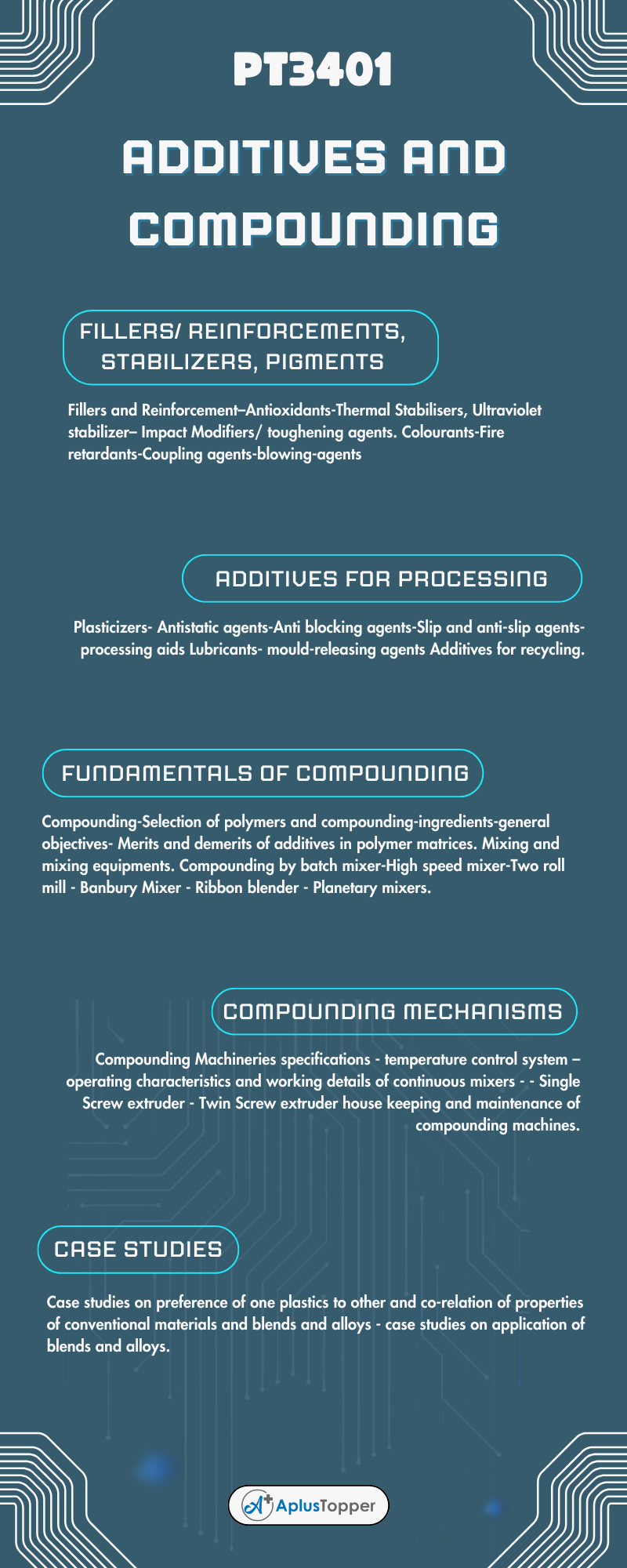 We tried our best to provide the following unit-wise PT3401 – Additives And Compounding detailed Syllabus. We sum up the appropriate textbooks and references to this page. If you have any doubts regarding the syllabus, you can simply comment below on the following page. Hope this information is useful. Share it with your classmates. Thanks for landing on this page.