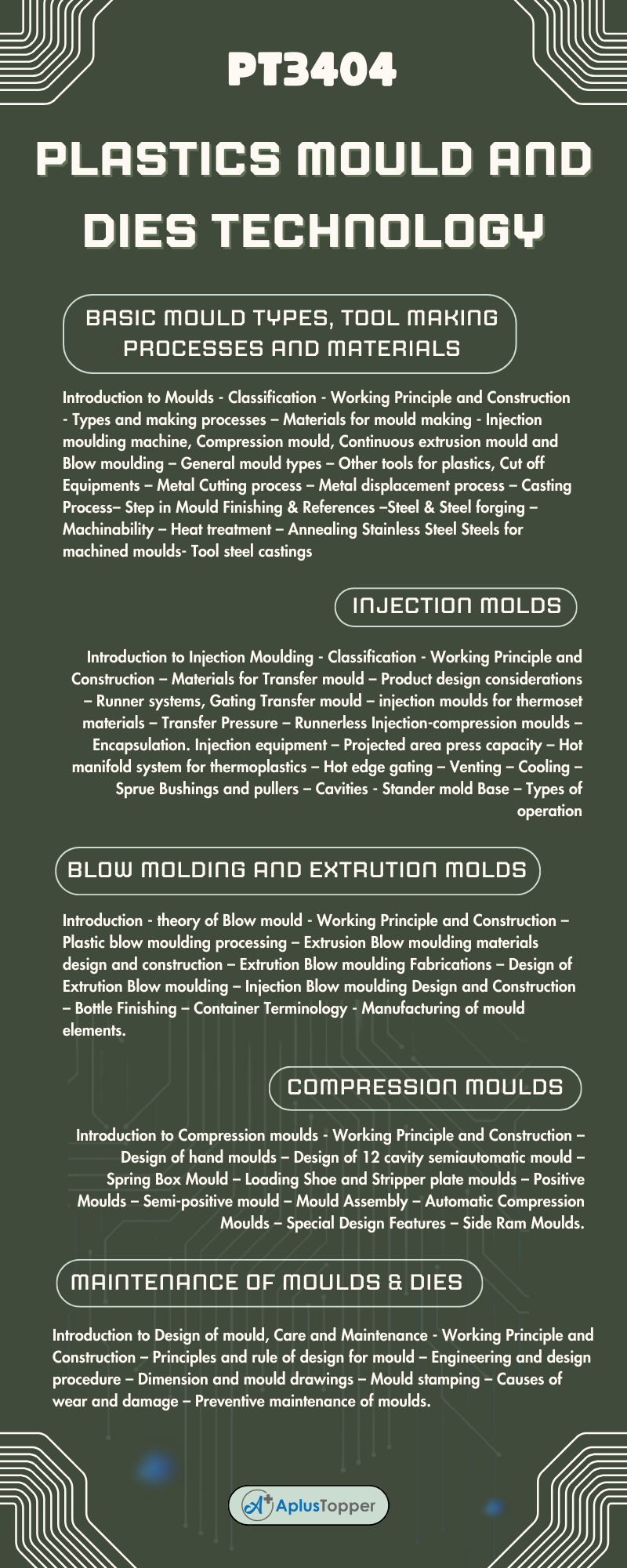PT3404 – Plastics Mould And Dies Technology Syllabus