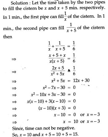 Question 54. Two pipes flowing together can fill a cistern in 6 minutes. If one pipe takes 5 minutes more than the other to fill the cistern, find the time in which each pipe would fill the cistern.