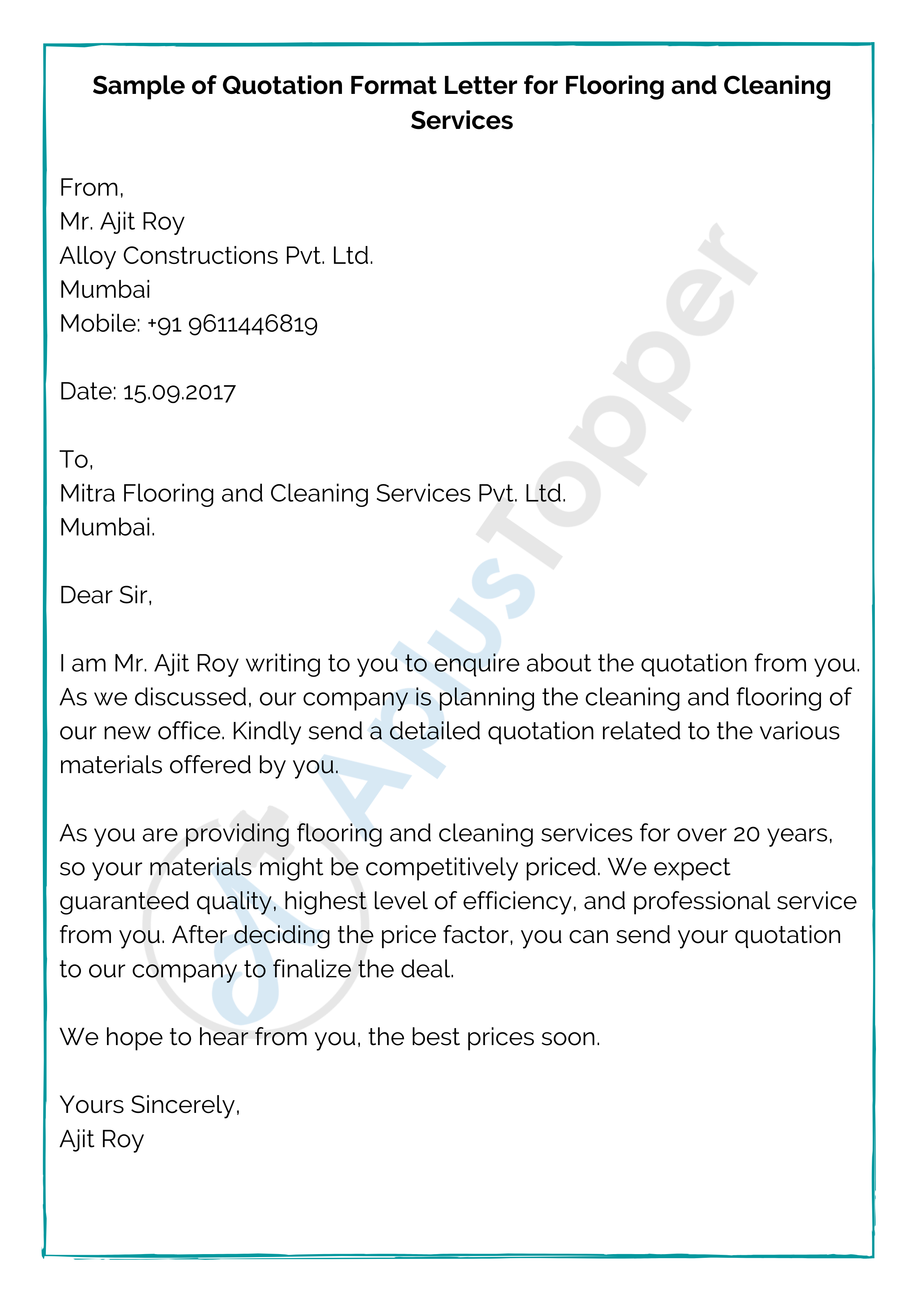 Sample of Quotation Format Letter for Flooring and Cleaning Services
