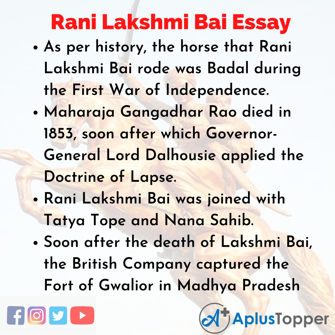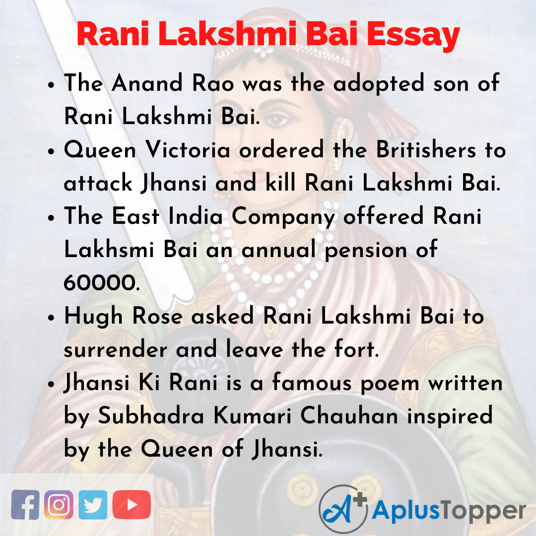 Short Essay on Rani Lakshmi Bai in English 100 words