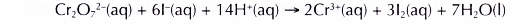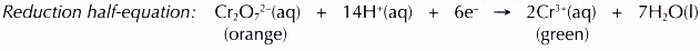 | (c) Potassium dichromate(VI) solution changes colour from orange to green. | Dichromate(VI) ions have changed to chromium(lll) ions. |