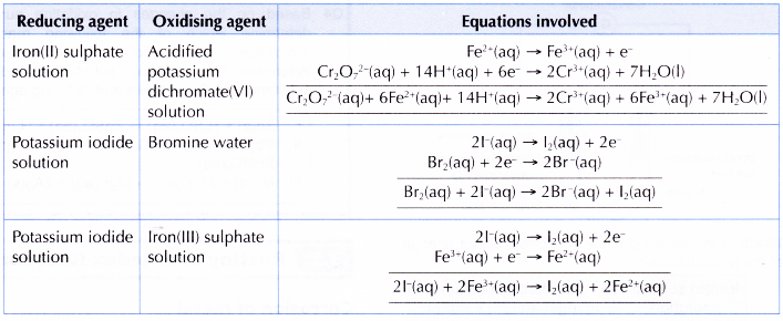 - When the reducing and oxidising agents are mixed together as in the previous reactions, the transfer of electrons occurs quickly and cannot be detected.