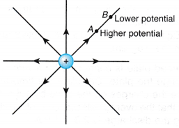 - Figure shows two points, A and B on an electric field line of a positively-charged sphere. Point A, which is nearer to the sphere, has a higher potential than point B.