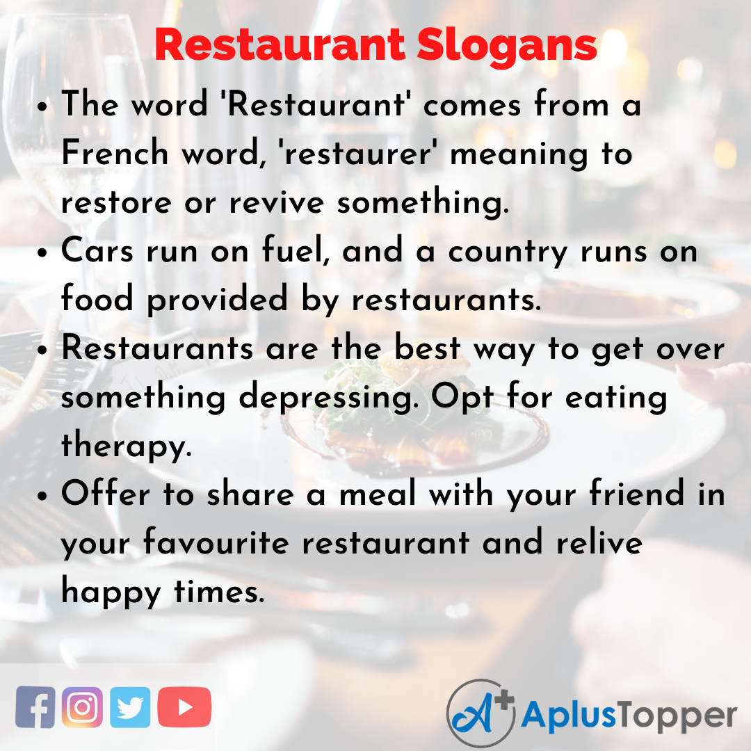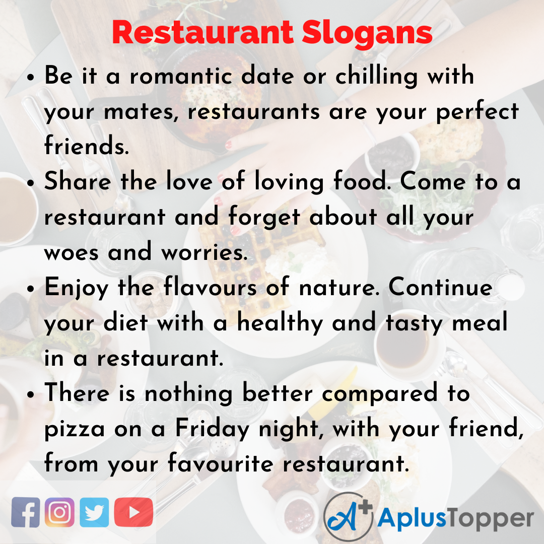 Slogans are a unique method for learning new subjects. Since restaurants are a vital establishment in our society, we provide you with some slogans on restaurants. These one-liners are a memorable way of impacting people positively.