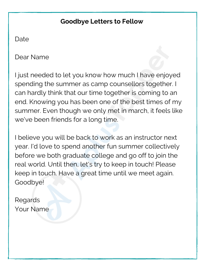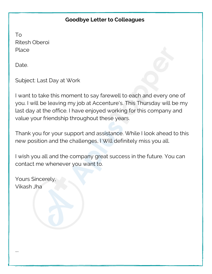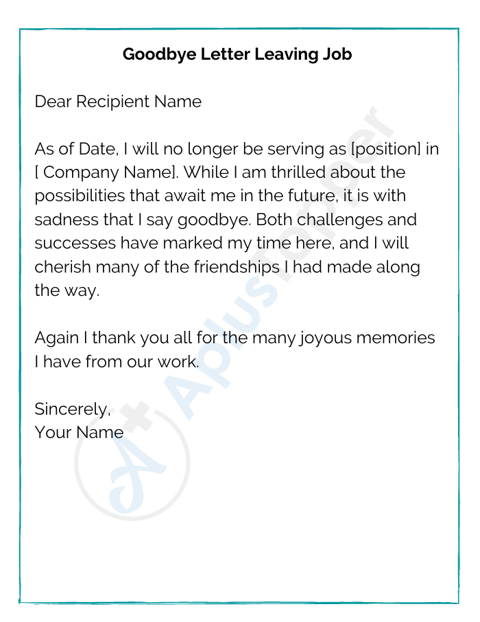 - Keep your tone friendly yet professional for a formal Goodbye Letter to your colleagues or coworkers.