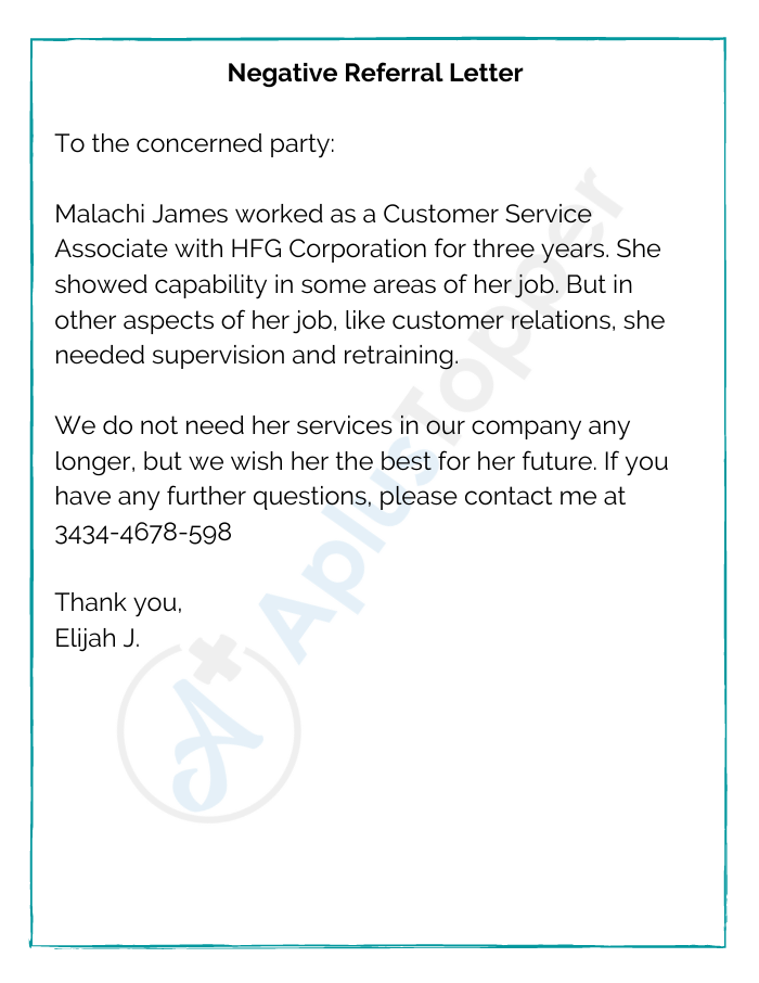 Negative Referral Letter