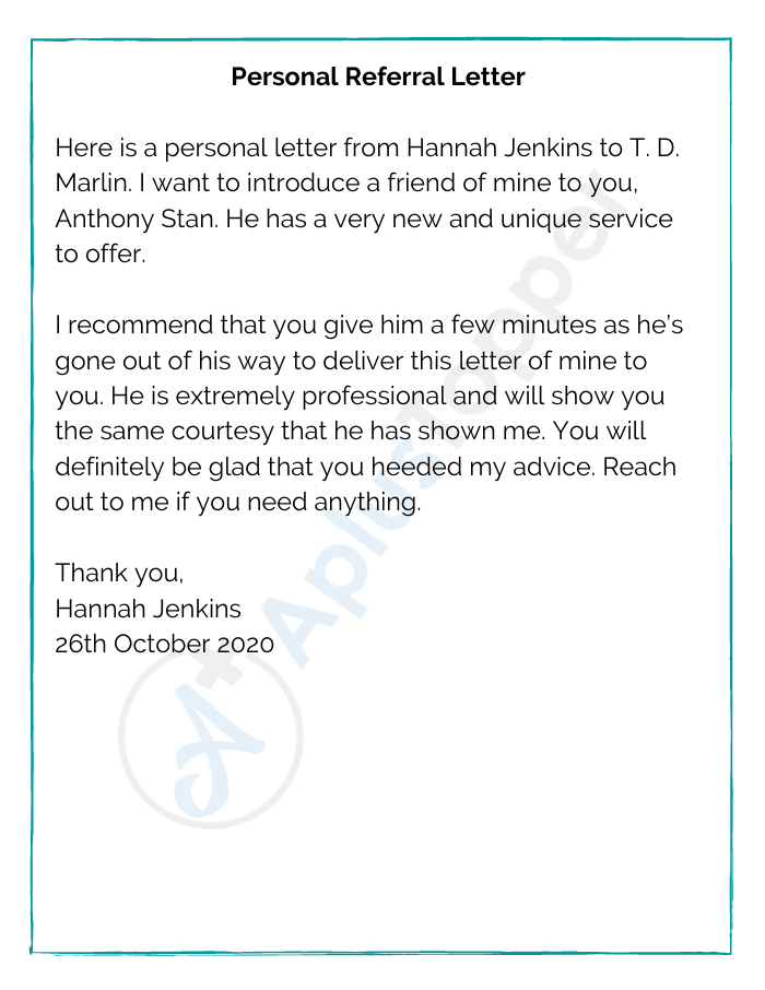 Personal Referral Letter