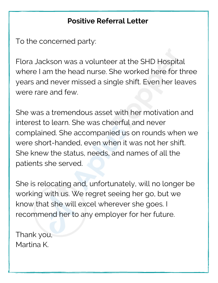 Positive Referral Letter