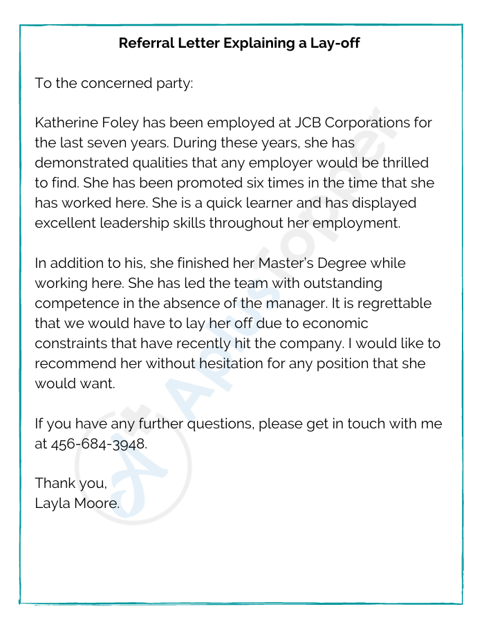 Referral Letter Explaining a Lay-off
