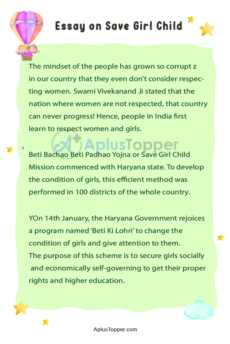 Essay on Save Girl Child: Today the women are in fierce competition with the male population, especially in India. Girls are attaining tops in every department and proving gender imbalance wrong. International Day of the Girl Child will be celebrated on 11th October every year.